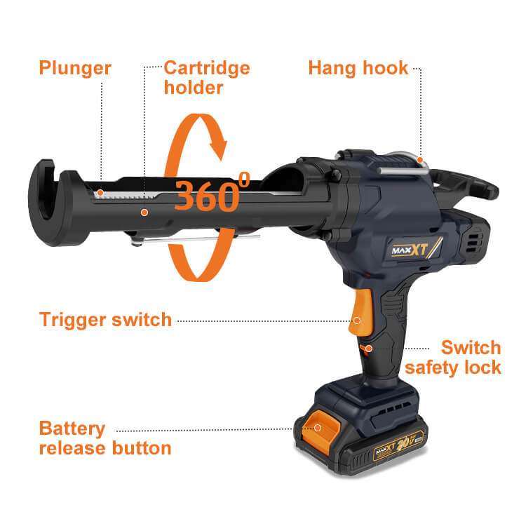 Беспроводной пистолет для герметика MaxXT 20 В, 6 скоростей, усилие 2500 Н, картридж 300 мл, с батареей 2,0 Ач